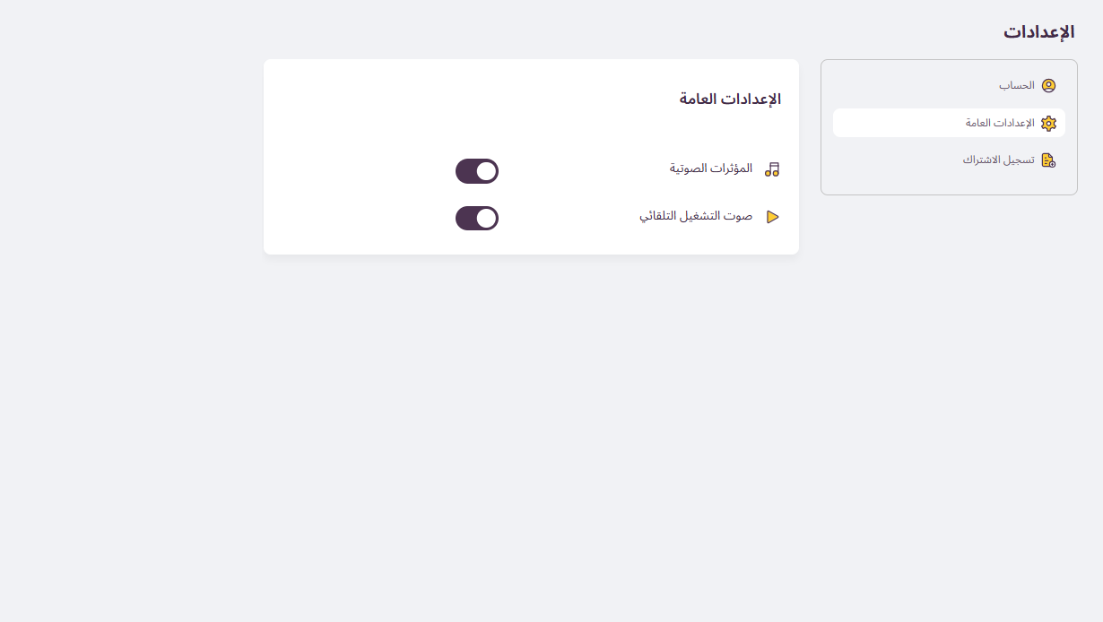 - الإعدادات 26 نوفمبر، 2024 06:12 محدَّث يمكنك من صفحة الإعدادات التحكم بالتالي: تغيير الاسم المؤثرات الصوتية صوت التشغيل التلقائي إعادة ضبط التقدم كاملاً رؤية تفاصيل الاشتراك بالإضافة إلى المزيد من الإعدادات مقالات ذات صلة - هل تطبيق ألف بي مجاني؟ - الإعدادات - أقسام تطبيق ألف بي